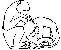 Объятия и улыбки. Все обезьяны легко возбудимы, раздражительны, агрессивны, обидчивы и злопамятны. И при этом очень общительны. Весьма противоречивое сочетание, не правда ли? Не удивительно, что у них есть много способов смягчать конфликты. Среди ритуалов приветствия, улыбок, похлопывания по спине и наделения пищей особую роль играют объятия. Наши ближайшие из ныне живущих родственников - шимпанзе - очень любят обниматься. Они могут подолгу сидеть, обняв друг друга, и получая от этого удовольствие и успокоение, Но еще чаще шимпанзе обнимают один другого, чтобы снять или предотвратить раздражение и обиду. И вполне успешно. Читатели знакомы с одним видом этих обезьян, но есть другой вид (или подвид) - карликовый шимпанзе, много менее известный. Этот на редкость добродушен и улыбается, как добрый, счастливый ребенок. Карликовые шимпанзе живут группой и соблюдают иерархию, но тратят на ее выяснение не много времени. Зато они подолгу успокаивают и умиротворяют друг друга улыбками, объятиями, чисткой шерсти, в том числе и "выискиванием вшей" в голове.