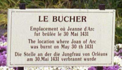 Толпы народа стояли на ее пути. Английское командование опасалось беспорядков и вывело на улицу весь гарнизон нормандской столицы. 120 солдат сопровождали повозку, еще 800 выстроились на площади Старого рынка. Там, неподалеку от церкви Спасителя, сложили костер...