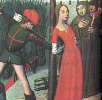 "Вот что случилось в воскресенье на троицу (27 мая)... Утром Жанна сказала своим стражникам-англичанам: „Освободите меня от цепи, и я встану" (на ночь ее опоясывали цепью, которая запиралась на ключ). Тогда один из англичан забрал женское платье, которым она прикрывалась, вынул из мешка мужской костюм, бросил его на кровать со словами „Вставай!", а женское платье сунул в мешок. Жанна прикрылась мужским костюмом, который ей дали. Она говорила: „Господа, вы же знаете, что мне это запрещено. Я ни за что его не надену". Но они не желали давать ей другую одежду, хотя спор этот длился до полудня. Под конец Жанна была вынуждена надеть мужской костюм и выйти, чтобы справить естественную нужду. А потом, когда она вернулась, ей не дали женское платье, несмотря на ее просьбы и мольбы.