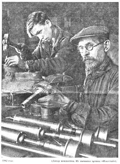 Каким же образом невозможное стало возможным? 26 июня 1941 года вышел Указ "О режиме рабочего времени рабочих и служащих в военное время". Отпуска отменялись. Вводились обязательные сверхурочные - рабочий день для взрослых доводился до одиннадцати часов при шестидневной рабочей неделе. А взрослые уходили на фронт. Кто же становился к станкам? Н.А. Вознесенский сообщает: удельный вес женщин среди рабочих и служащих увеличился с 38 процентов в 1940 году до 53 - в 1942-м, доля рабочих и служащих до 18 и старше 50 лет - с 15 до 27 процентов. Вот кто становился к станкам: женщины, подростки, старики.