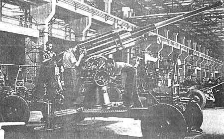 В 1938 году было изготовлено 12,3 тыс. орудий, в 1939 году - 17,3 тыс., а в 1940 году - 15 тыс. Некоторое снижение выпуска орудий в 1940 году произошло в результате освоения более сложных и совершенных пушек. За первый год войны было выпущено более 85 тыс. орудий.