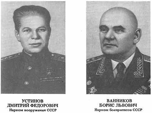 В начале 1941 года Наркомом вооружения был назначен 33-летний Д.Ф. Устинов, ранее работавший директором завода "Большевик", талантливый инженер и неутомимый организатор крупного масштаба, его первым заместителем стал В.М. Рябиков, заместителями - В.Н. Новиков, И.А. Мирзаханов, И.А. Барсуков, Н.П. Карасев, И.А. Агеев. Большую роль играли и специальные службы наркомата - его главные управления, "отделы и ведущие специалисты - Н.Э. Носовский, А.Е. Добровольский, Б.А. Хазанов, А.Б. Богданов, А.Н. Сергеев, С.И. Ветошкин, К.А. Герасимов, И.Ф. Дмитриев, А.И. Щербаков, П.И. Калинушкин, А.С. Бутаков, И.А. Фетисов, М.П. Бривин, П.Д. Тропкин, С.А. Шестаков, А.Д. Любимов и многие другие. На посты директоров заводов, главных инженеров, конструкторов, технологов, металлургов были назначены крупные специалисты и организаторы.