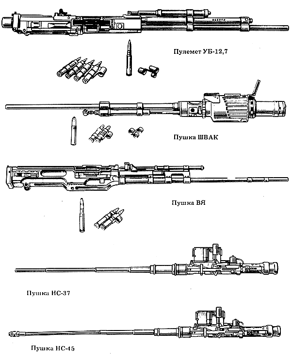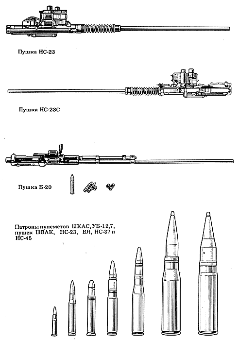 В 1934 году был принят на вооружение 12,7-мм авиационный пулемет Б.Г. Шпитального и С.В. Владимирова - ШВАК (ШВАК - Шпитальный, Владимиров; авиационный, крупнокалиберный). В ходе отработки и испытаний пулемета выявилась возможность сделать его бикалиберным - 12,7 и 20 мм. Так, в 1936 году была создана 20-мм пушка ШВАК, получившая в годы Великой Отечественной войны широкое применение. Для этой пушки пришлось создавать специальный короткий патрон со снарядом массой 96 г.