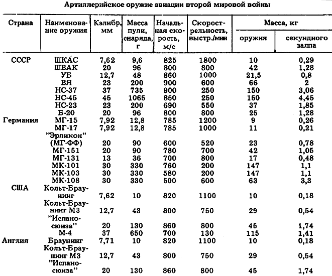 В целом о превосходстве советских авиационных пушек и пулеметов, состоявших на вооружении Советской авиации и наших союзников во время Великой Отечественной войны, над авиационными пушками и пулеметами фашистской Германии можно судить по данным таблицы.