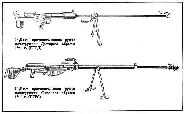 В исключительно короткие сроки были созданы и, освоены заводами однозарядное противотанковое ружье ПТРД конструкции В.А. Дегтярева и пятизарядное противотанковое ружье ПТРС конструкции С.Г. Симонова.
