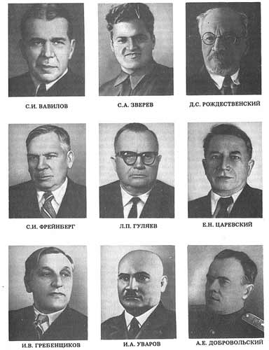 Имена академика Д.С. Рождественского - первого директора ГОИ, академиков И.В. Гребенщикова, А.А. Лебедева, И.В. Обреимова, членов-корреспондентов АН СССР B.C. Грум-Гржимайло, Н.Н. Качалова, Г.Ю. Жуковского, инженеров К.П. Мельникова, В.В. Гаврилова навечно вошли в историю оптико-механической промышленности Советского Союза.