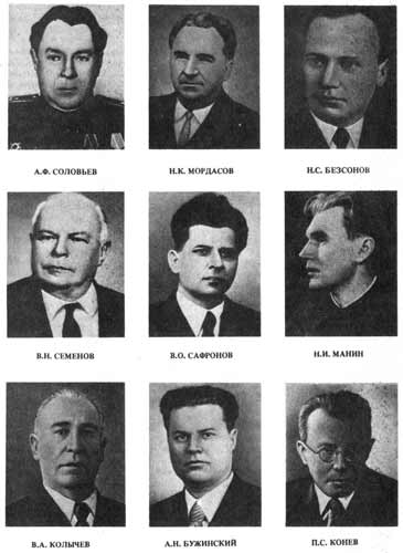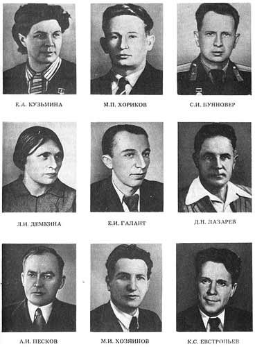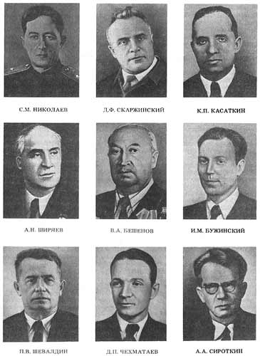 Особо выдающуюся роль на предприятиях отрасли во время Великой Отечественной войны сыграли парторги ЦК ВКП(б) П.Т. Максимовский, С.А. Сеничкин, Я.С. Гицель, К.Б. Арутюнов, И.И. Васильев, И.П. Калашников, комсорги ЦК ВЛКСМ Н.Л. Лебединский, А.В. Захарова и др.