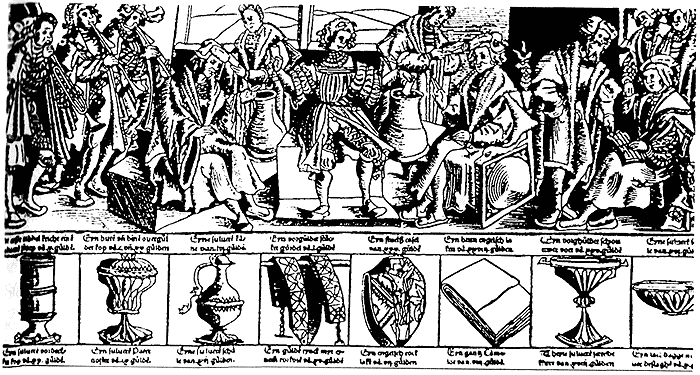 Считается, что первый в истории рекламный плакат напечатал книготорговец Батдольд в 1482 г. для рекламы нового издания "Геометрии" Эвклида. Он не сохранился. До нас дошел плакат 1491 г., который предлагал почтенной публике рыцарский роман "Прекрасная Мелузина". Этот графический лист примечателен еще и тем, что здесь впервые использованы эротические мотивы.