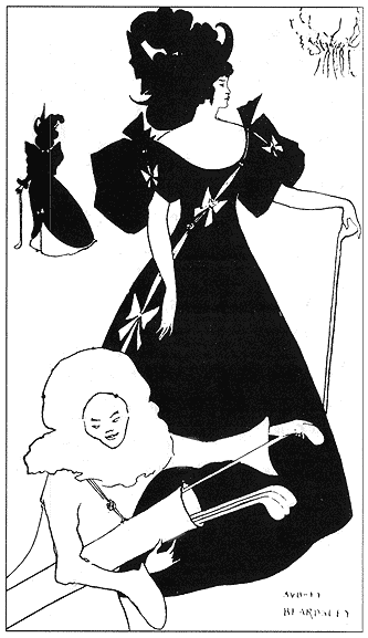 1895 г.Работы Бердслея были в основном черно-белые (тушь и перо). Прославился он иллюстрациями к знаменитым книгам - "Смерть Артура" Томаса Мэллори, "Саломея" Оскара Уайльда, рассказам Эдгара По. Он иллюстрировал "Манон Леско", "Даму с камелиями", "Опасные связи", "Мадам Бовари". Наиболее известны его иллюстрации к "Лисистрате" Аристофана, являющиеся шедевром эротического искусства. Рекламное творчество Бердслея также связано в основном с книгой. Он работал в жанре малой рекламной полиграфии и создал макеты рекламных листовок к журналам и альманахам, объявлений о новых книгах, обложки каталогов книжных аукционов, пригласительных билетов на великосветские мероприятия. У Бердслея тоже появились подражатели, использовавшие его стиль для собственных рекламных работ.