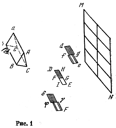 Если смотреть на продолговатый прямоугольный кусок бумаги, окрашенный наполовину в красный, наполовину в синий цвет, через призму, как это показано на рис. 1, то прямоугольник представляется как бы переломанным: синяя половина отклонена сильнее, чем красная.