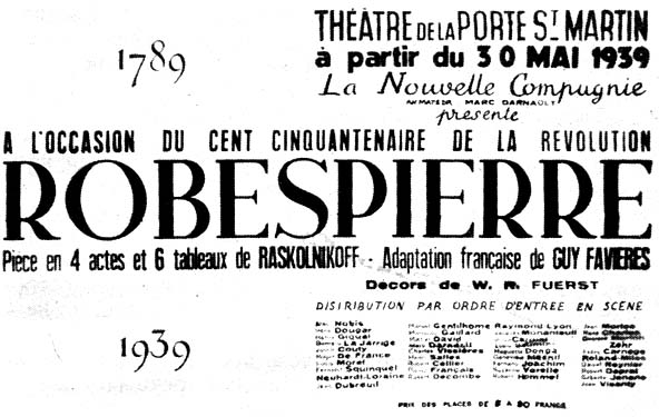 Афиша парижского спектакля по пьесе Ф.Ф. Раскольникова