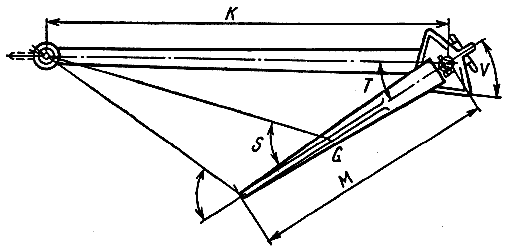 8. Отношение длины лап к длине штока влияет на форму лап, угол атаки (Р. Дэнфорт называет углом атаки S угол между плоскостью лапы ипрямой, соединяющей центр площади лапы с осью болта скобы якоря) и угол носка лап. Если лапы сделать длинными, то угол атаки получится большим для хорошего зарывания якоря. Если их сделать короткими, то это не даст возможность обеспечить их достаточную площадь при форме, которая позволит им свободно углубляться в грунт. Если 35% площади лап находится за осью вращения веретена, длина лап должна составлять не менее 55% длины веретена, но не более 70%. Если за осью вращения находится больше 35% площади лап, то их длина М может быть менее 55% длины веретена. Это отношение также влияет на распределение сил вдоль веретена, что имеет немалое значение для хорошего и быстрого зарывания якоря в грунт.