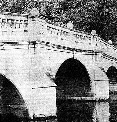 Так, мост Клэр-на-задах в Кембридже весьма заметно изогнут посредине из-за смещений в основаниях арки (рис. 76). Это произошло уже давно, и тем не менее мост абсолютно безопасен.