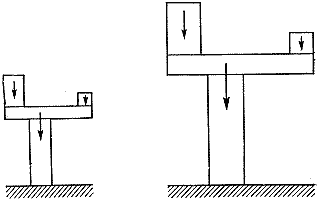 Это правило, установленное Галилеем, известно как "закон двух третей"; оно является веским основанием для применения современных методов расчета при проектировании автомобилей, кораблей, самолетов, станков. Возможно, именно поэтому всех этих конструкций до недавнего времени и не существовало, по крайней мере в их современной форме. Однако при создании больших каменных сооружений мы можем не обращать внимания на закон двух третей, поскольку, как уже говорилось, здания обычно рушатся вовсе не из-за разрушения материала при сжатии. Напряжения в каменной кладке столь малы, что мы можем позволить себе практически неограниченно увеличивать размеры сооружений. Однако в отличие от большинства других конструкций здания разрушаются потому, что их стены теряют устойчивость и опрокидываются, а устойчивость при любых размерах может быть предсказана путем исследования модели. В принципе устойчивость здания сродни устойчивости весов или безмена (рис. 77).