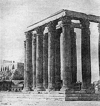 Рис. 80. Развалины храма Зевса Олимпийского в Афинах (видна трещина на архитраве).