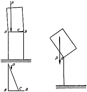 Рис. 63. Если линия действия нагрузки проходит за пределами отрезка АВ, то стена будет поворачиваться вокруг точки A, - опрокинется и упадет.