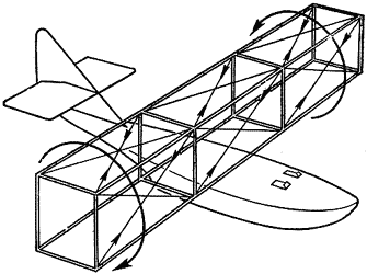 Требование к инженерной конструкции быть одновременно и надежной, и .легкой было тогда внове. На крыло самолета действуют изгибающие нагрузки, весьма напоминающие нагрузки на мост. Предшествующий опыт позволял с этими нагрузками управиться без особых опасений за надежность. Но что было совершенно новым, так это действующие на крыло самолета крутящие моменты. Если не принять должных конструктивных мер, крыло самолета будет скручено.