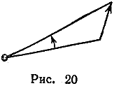 Еще пример сохраняющейся величины - момент количества движения, о котором мы уже говорили. Например, если у нас есть движущееся тело и мы выберем произвольный центр, то скорость увеличения площади (рис. 20), описываемая отрезком, соединяющим тело с центром, умноженная на массу тела, называется моментом количества движения. Таким образом, момент количества движения численно равен площади, описываемой отрезком, соединяющим тело с центром, при движении тела за единицу времени. Сложив моменты всех тел, входящих в систему, мы получим момент количества движения системы.