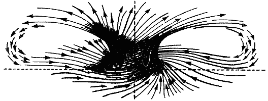 В природе вихри возникают во множестве. Они появляются в той части потока, где скорость быстро меняется в направлении, перпендикулярном потоку. Каждому случалось видеть вихри в быстрой реке на переходе от быстрины к замедленному течению у берега. Целая цепочка вихрей может тянуться за движущимся предметом, скажем, автомобилем. Их особенно удобно наблюдать на шоссе в метельные дни, когда машина обдувается крепким встречным ветром, а хлопья снега проявляют движение прозрачного воздуха. Такие же вихри появляются при обтекании препятствий.