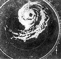 Зарегистрирован случай, когда во время прохождения смерча сосновая палка пробила лист железа толщиной около сантиметра. Этим же качеством обладают ураганы. На рисунке 10 мы видим палку, проткнувшую ствол пальмы. По-видимому, эта способность также связана с резкими перепадами скорости в вихре.В последние десятилетия крупные вихри исследовались со специальных самолетов метеослужбы. Радиолокаторы и метеоспутники позволили получить "изображения" глобальных ветровых систем. Особенно четкими получаются фотографии циклонов, поскольку они сопровождаются сильной облачностью и осадками. Как показывают фотографии, осадки в циклонах концентрируются в четко выделяющиеся спиральные полосы. Антициклон прозрачен, осадки в нем редки, а если они и выпадают, то обычно на периферии в виде мороси. Поэтому антициклоны значительно труднее различить на спутниковых фотографиях.