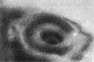В сердцевине смерча давление падает очень низко, поэтому смерчи "всасывают" в себя различные, иногда очень тяжелые предметы, которые переносят затем на большие расстояния. Люди, оказавшиеся в центре смерча, погибали. Поэтому нет наблюдений его полости изнутри. Но ее видели снизу, когда смерч проходил над головой наблюдателя. Рисунок 5 представляет собой фотографию внутренней полости смерча, снятую снизу.