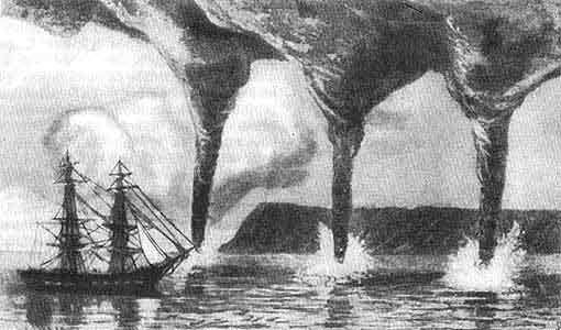 Рис. 8. Зарисовка водяных смерчей 1840 г. в Средиземном море у берегов Алжира.