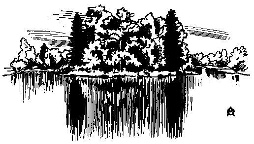 Деревья разнообразных пород - липа, дубы, верба, клён, береза, рябина составляют общую зеленую массу, из которой высечен пейзаж, как из драгоценной яшмы.
