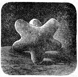 Слепи из свежего хлеба неуклюжую звездочку, такую, как у нас на рисунке, и примерно такой же величины. Попробуй, брось ее изо всех сил об пол. Она подпрыгнет - и ничего ей не сделается: упругие отростки спружинят и выпрямятся как ни в чем не бывало. Можешь даже положить эту хлебную звездочку на стол и сильно стукнуть по ней кулаком. Тебе все равно не удастся ее сплющить: ее спасет упругость. Помни только, что звездочку нужно слепить непременно из свежего хлеба; иначе ничего не выйдет из этого опыта. |