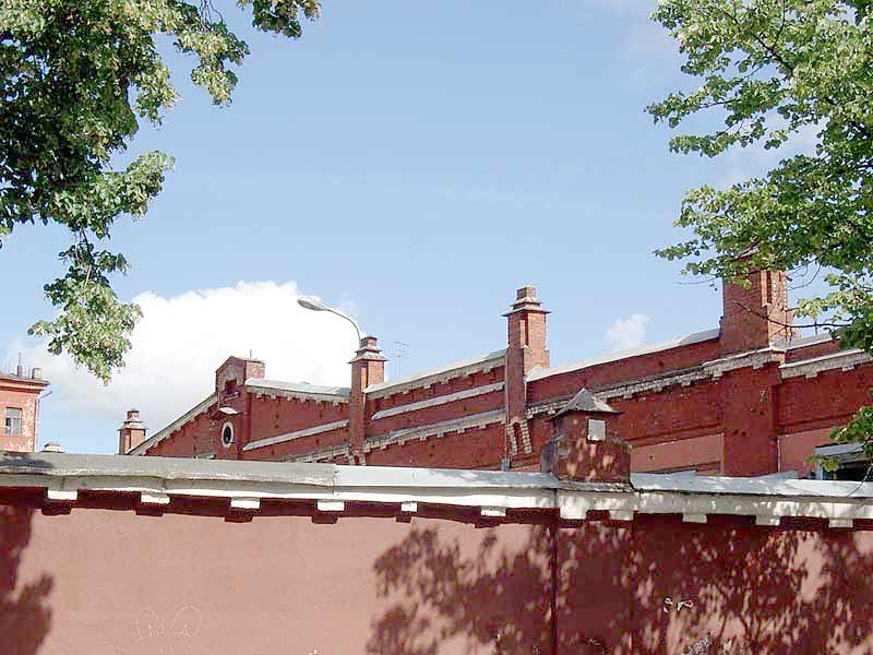 Ритмически повторяющиеся элементы: башенки, пилястры, декор карнизов - главный инструмент архитектора. Вид на главный фасад поверх боковой стены.